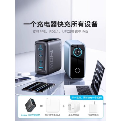 Anker安克智显充140W氮化镓充电器适用苹果17手机iPhone16快充Macbook平板13电脑华为笔记本